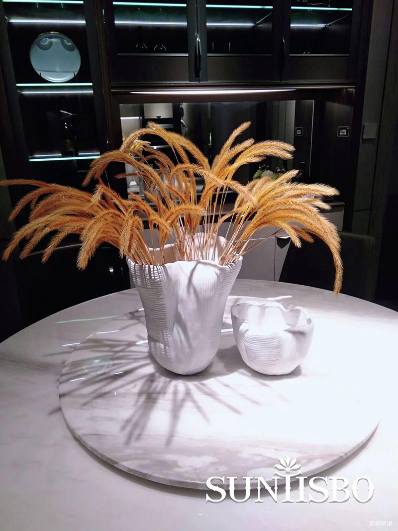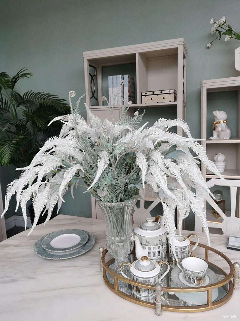 3.輕奢的配飾也需邀來似錦繁花相稱。色彩跳脫的植物更為亮眼,讓自然界的色彩與姿態應和空間之間的協調,傳遞空間與情感的共鳴。