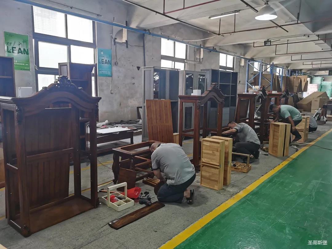 本屆技能競賽設置為工業(yè)組和商業(yè)組,共設競賽項目8項,其中,工業(yè)組競賽包含了打滾邊、打銅釘、自身產(chǎn)品組裝、成品組裝、柜體噴底色、修色、板材開料等七大細項。商業(yè)組以組裝辦公臺、床頭柜為主。