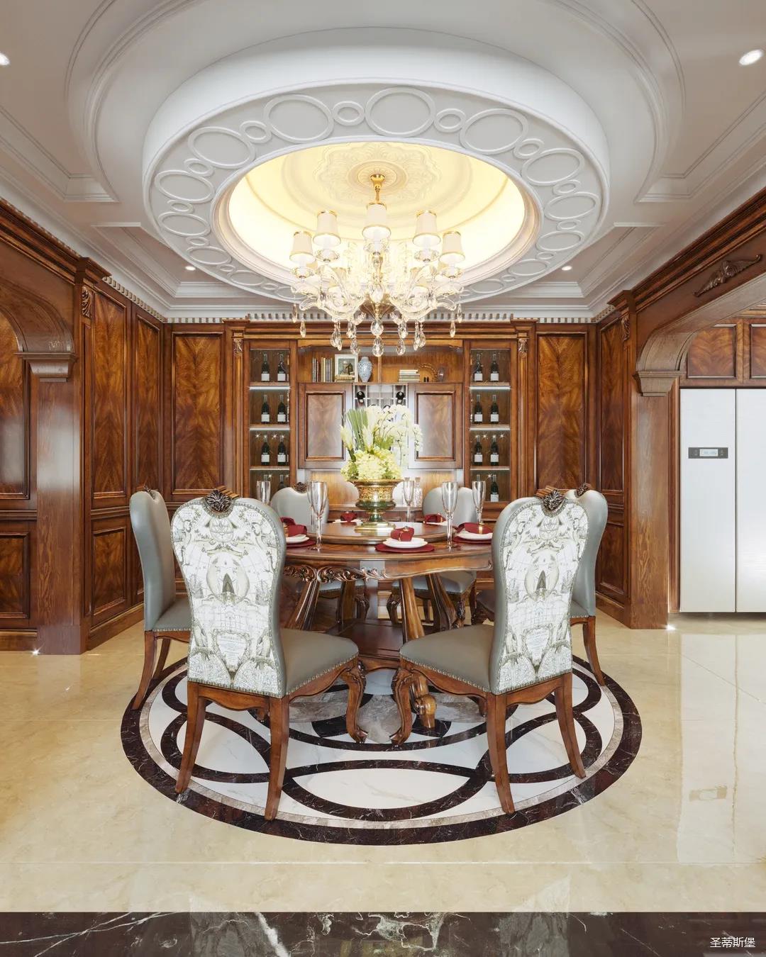 女業主是留美歸來,非常喜歡美式用餐氛圍,設計師以懷舊雅致作為室內基調,整體定制柜與護墻,都透著美式的自然懷舊,即使褪去家具軟裝,僅存留硬體結構,仍透散著優雅純凈的美式韻味。