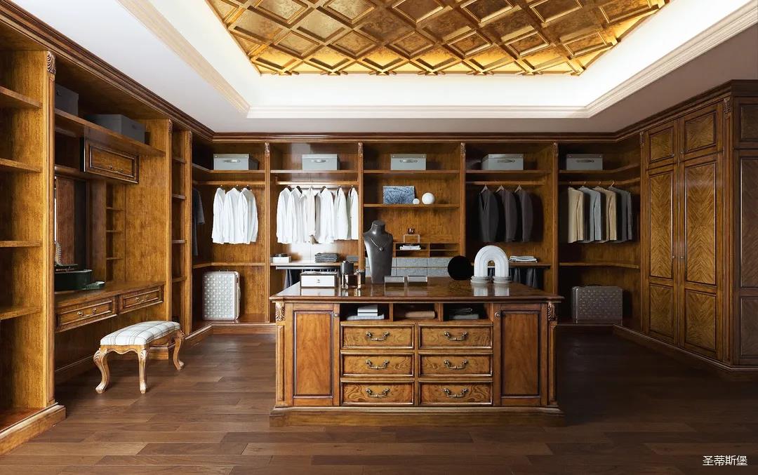 進入玄關,即刻被吸引,懷舊的啞光漆面上點綴著古典的輪廓線與精致的雕花,仿佛進入了一座古老的森林城堡,神秘悠遠。隨處可見的黃銅元素,不僅給室內帶來了奢華質感,也彰顯著主人好客氣質。